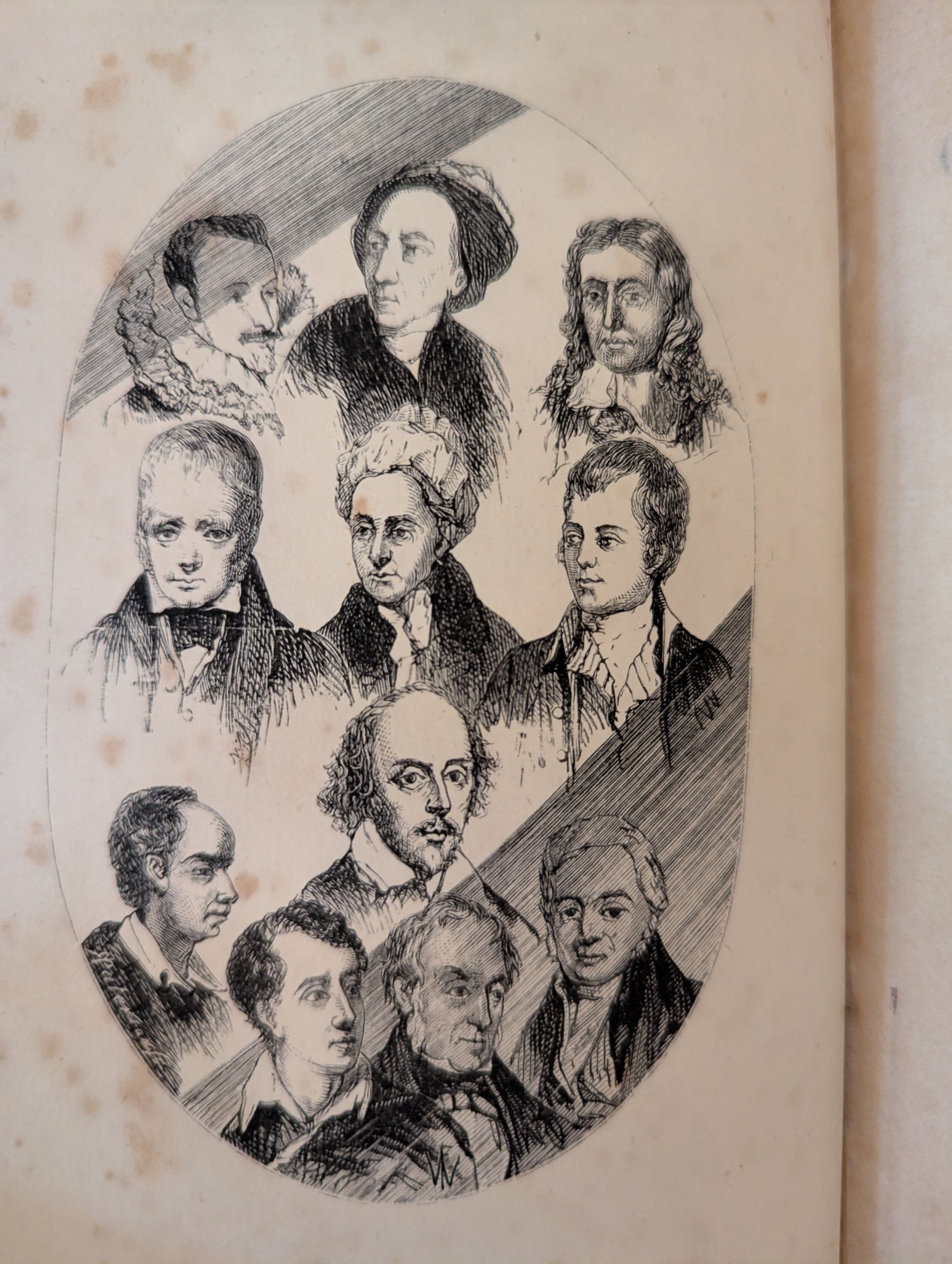 Les portraits des poètes gravés sur la page de garde. Vignette sur la page de titre. Gravures h.t.